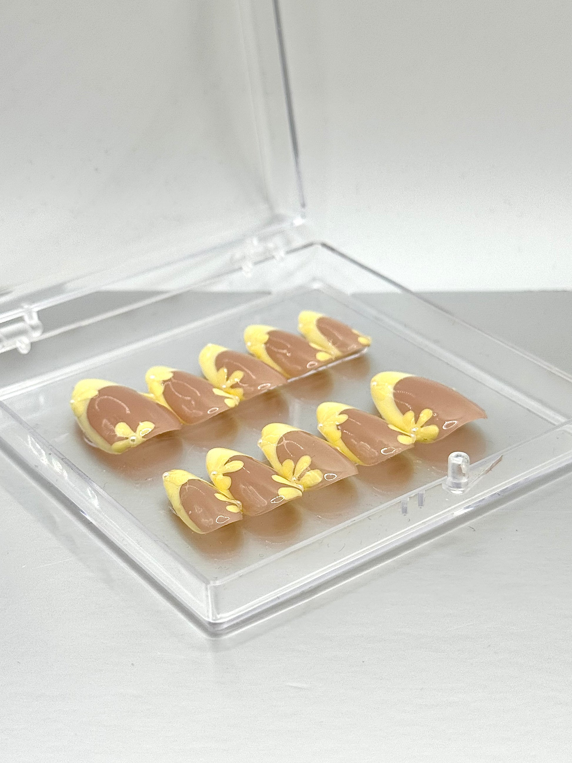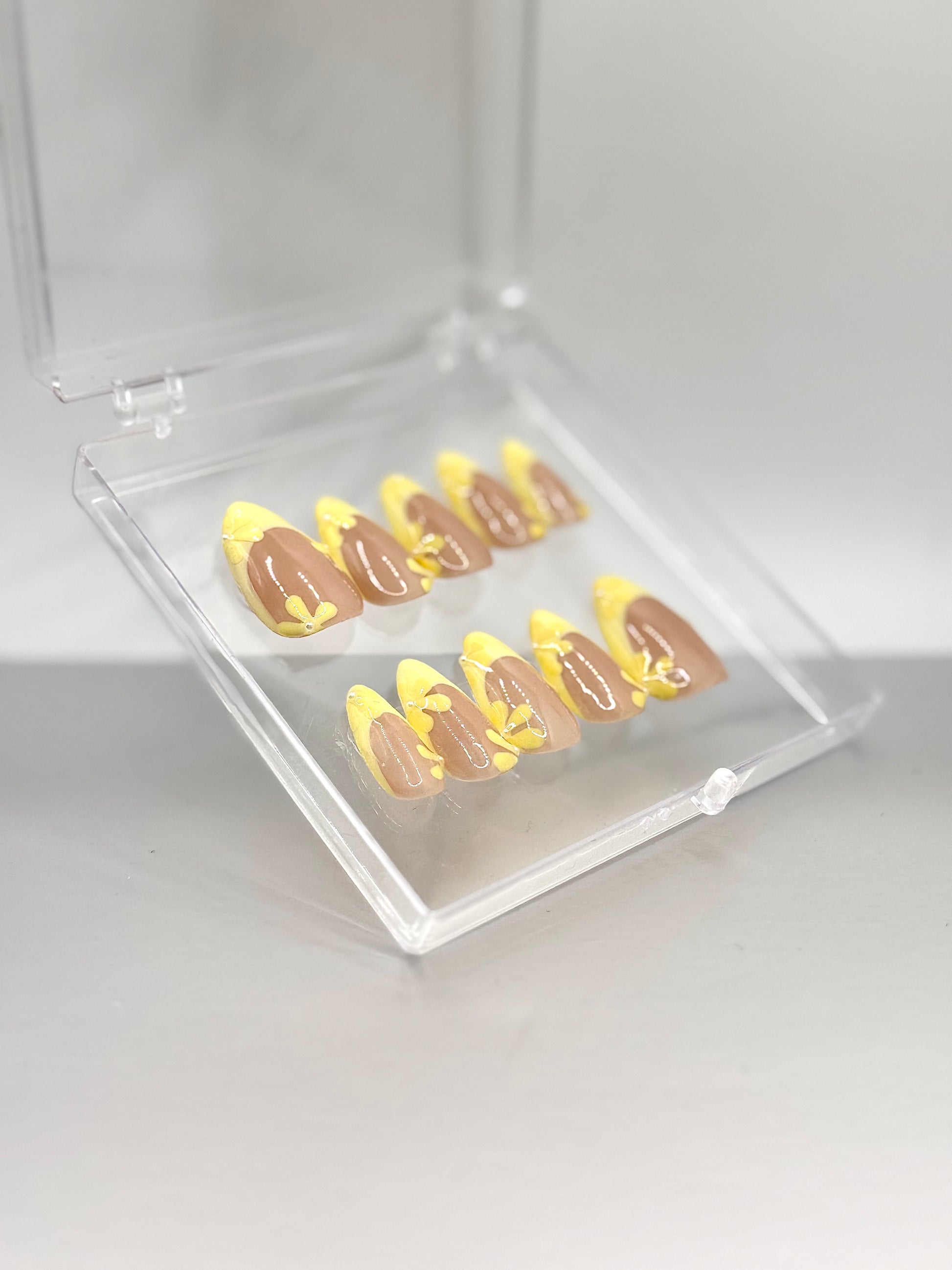 Bright yellow tips with cute little flowers for a fresh ,sunny vibe🌼